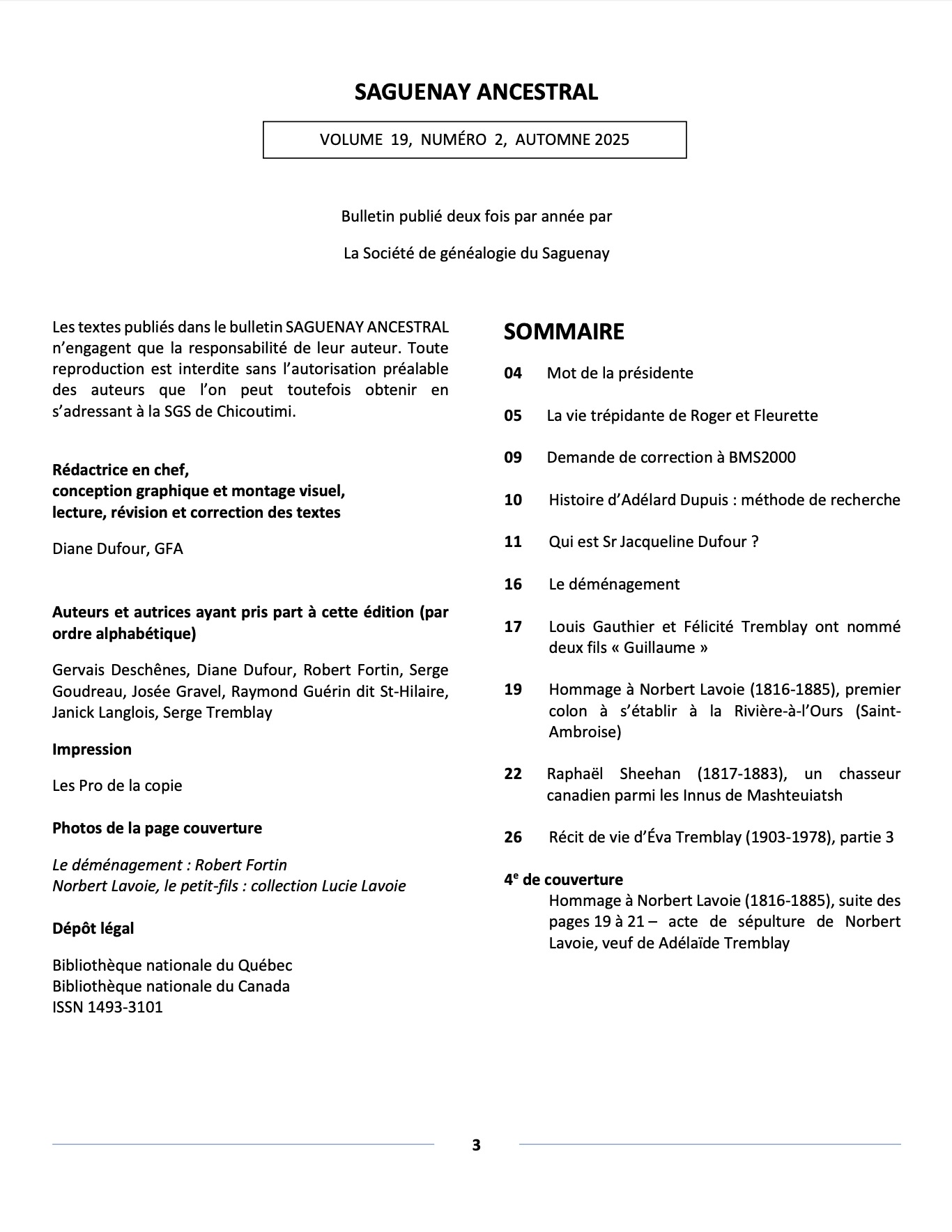 Pour plus d’information voir le menu Communiqués – La Société de généalogie du Saguenay (sgsaguenay.ca)